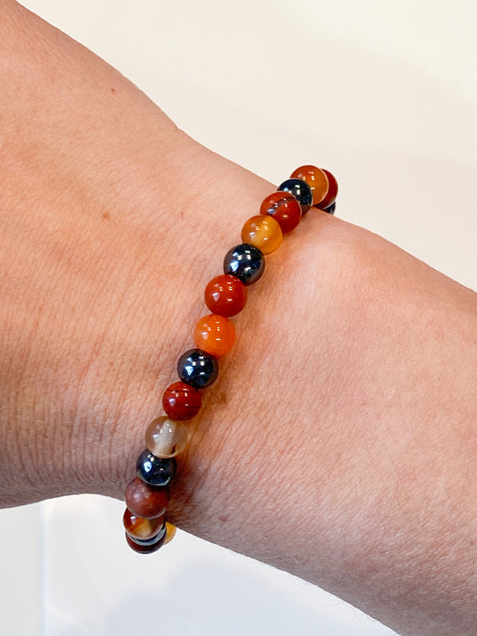 Bracelet pierres anti-fatigue en jaspe rouge, cornaline et Hématite 6mm
