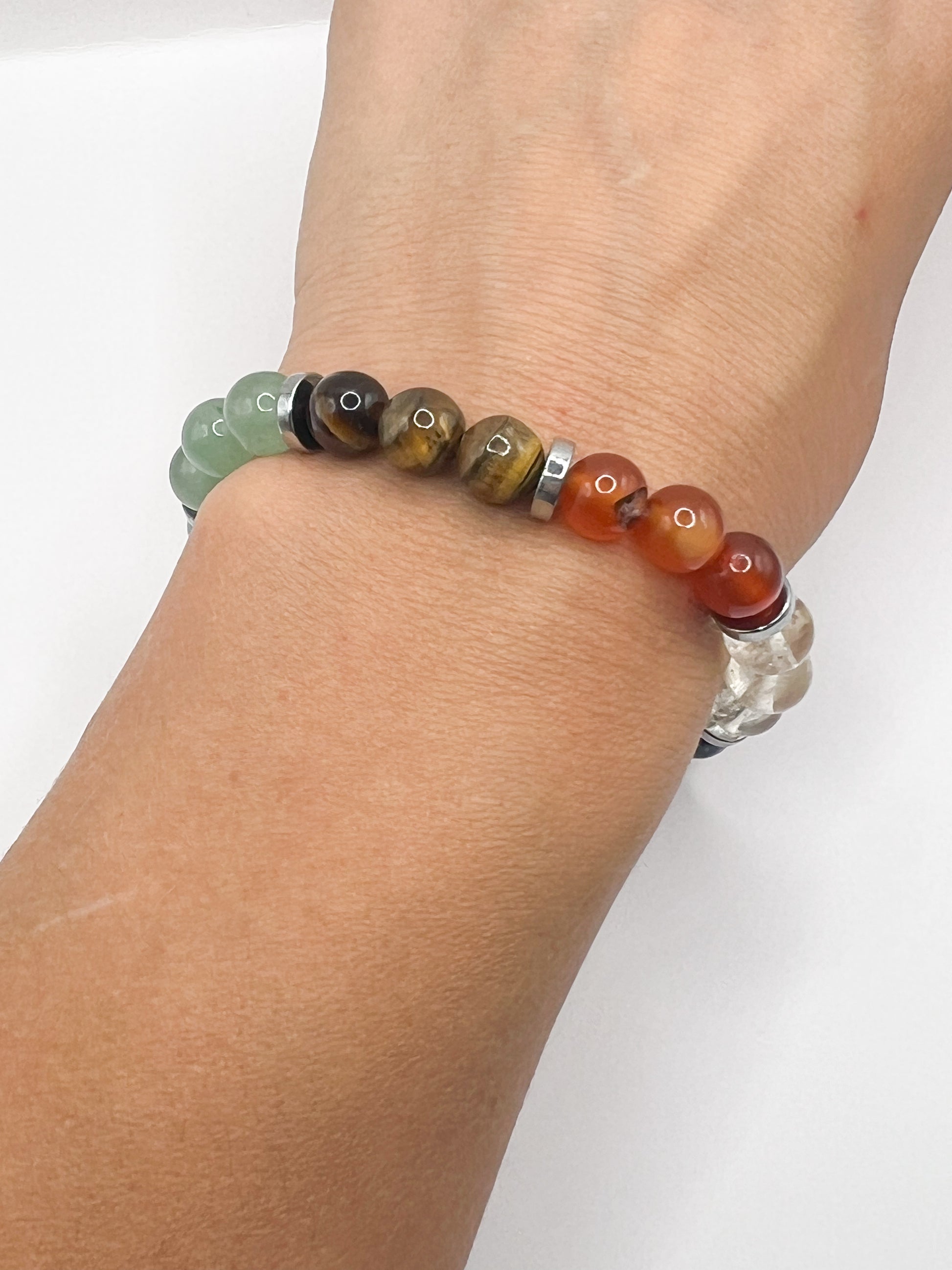 Le bracelet 7 Chakras est un véritable allié de lithothérapie. Il aide à rééquilibrer les énergies, à favoriser la paix intérieure et à renforcer la vitalité.