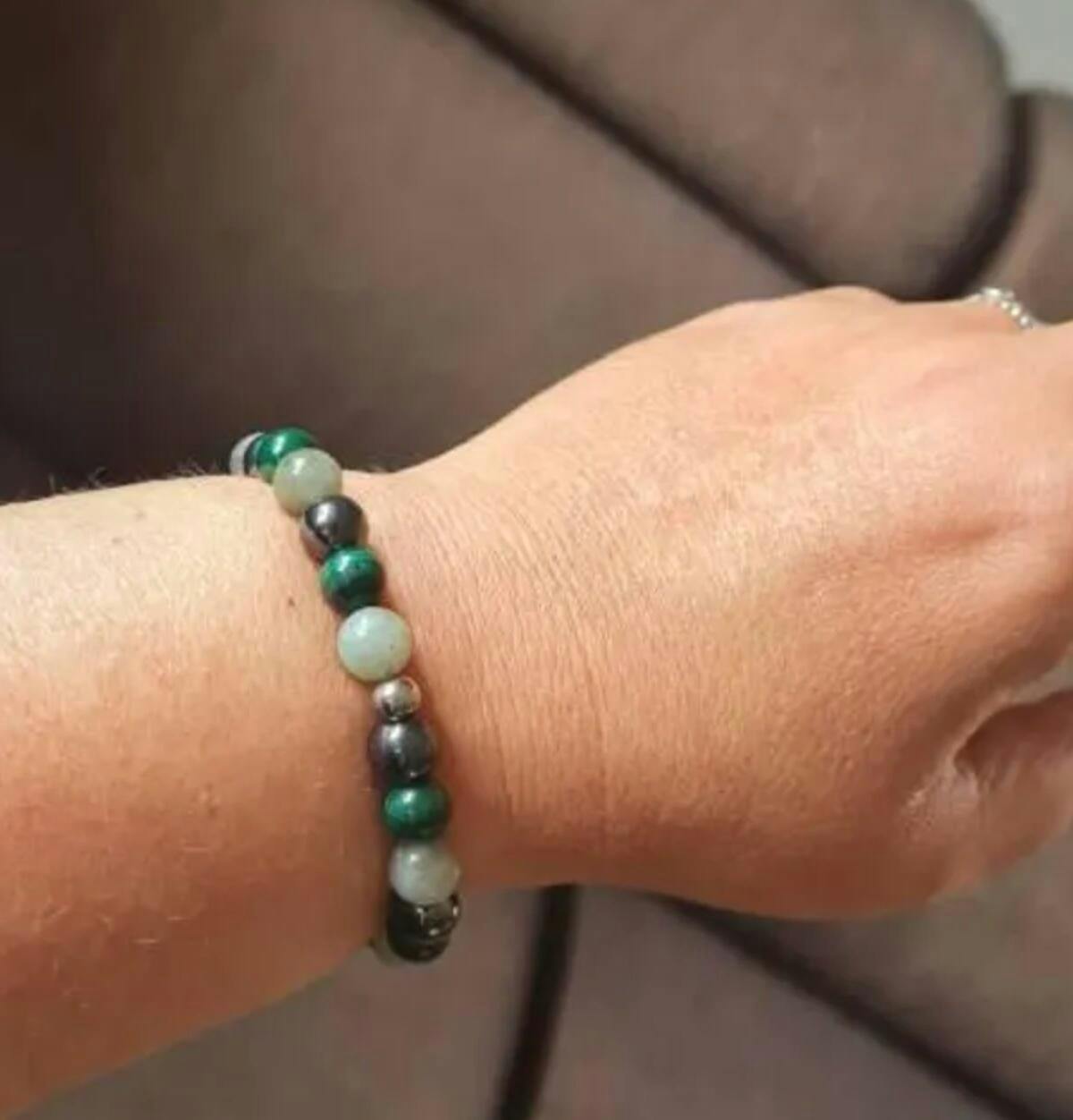 💎 Bracelet Anti-Douleur en Pierres Naturelles – Labradorite, Malachite & Hématite
