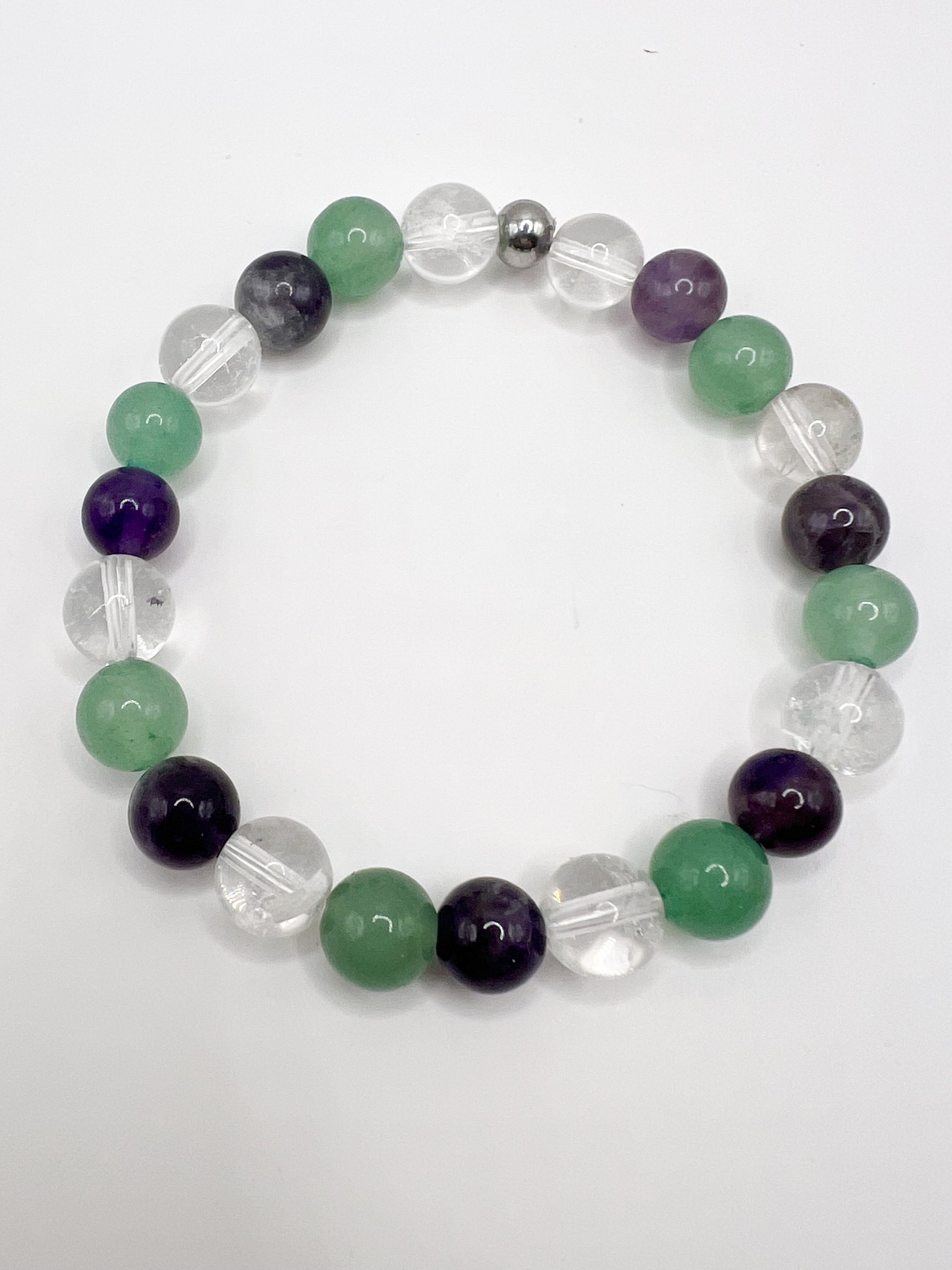 Bracelet en Pierres Naturelles Aventurine, Améthyste & Cristal de Roche – Paix Intérieure & Harmonie Énergétique