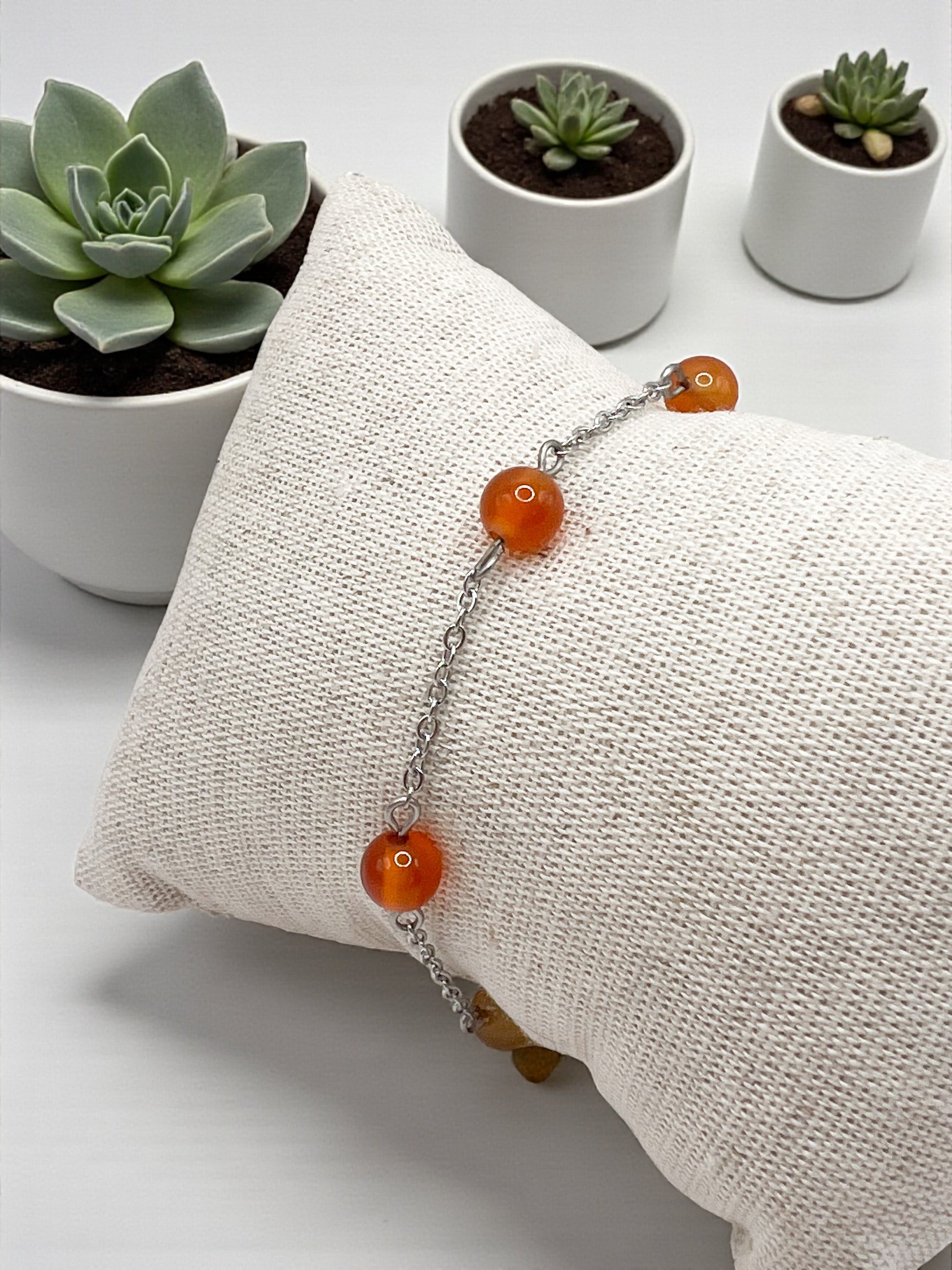 Bracelet Cornaline 6mm – Vitalité, Confiance & Énergie Positive | Acier Inoxydable Argenté