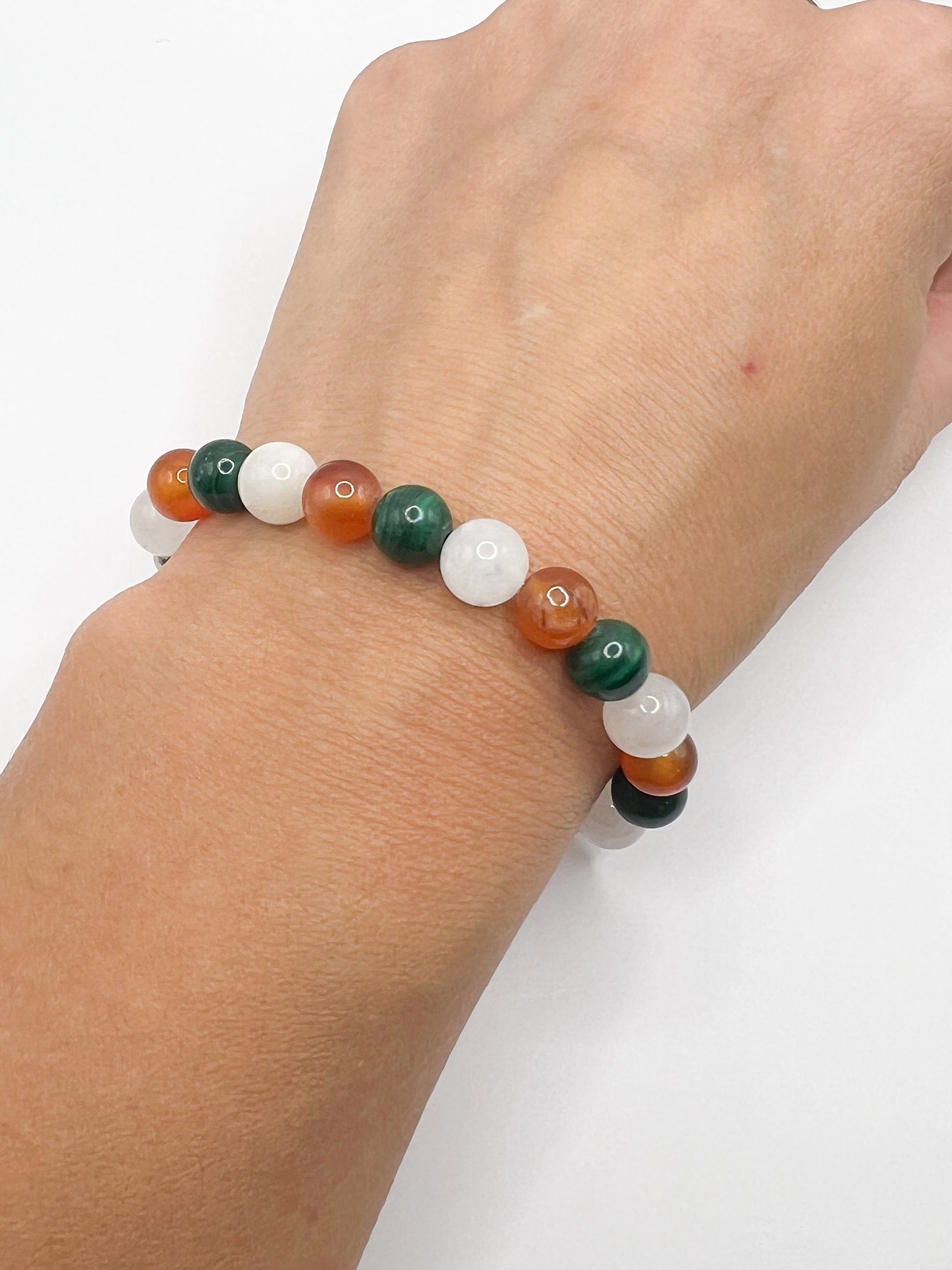 Bracelet Bien-Être Féminin – Cornaline, Malachite & Pierre de Lune 🌙