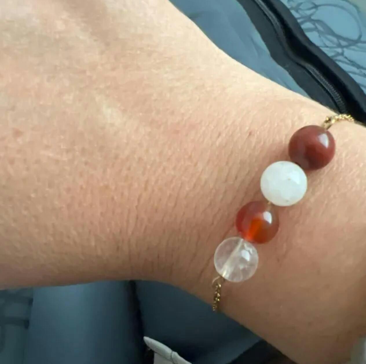Bracelet Énergie Féminine – Pierre de Lune, Cornaline, Jaspe Rouge & Cristal sur Acier Argenté