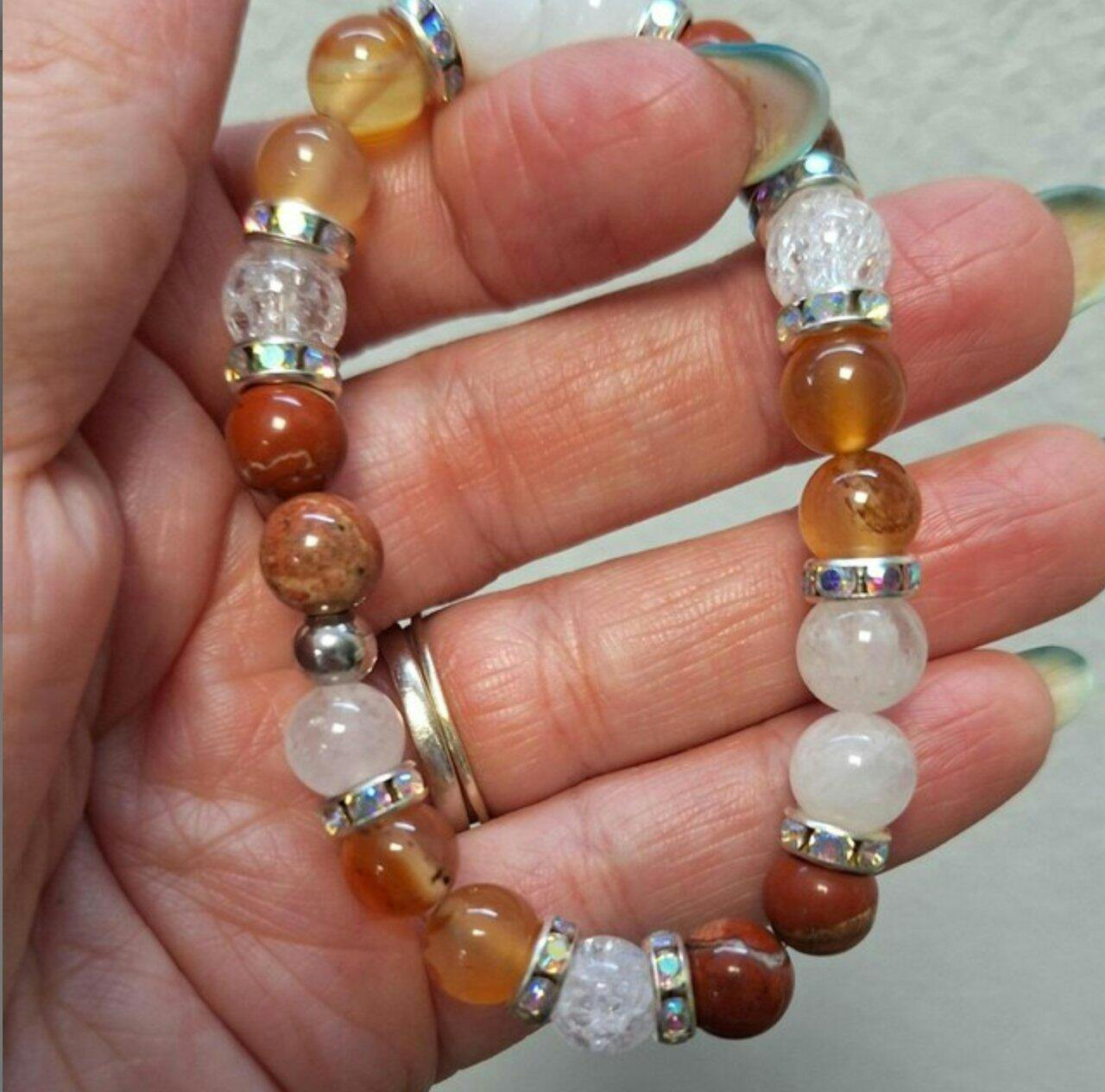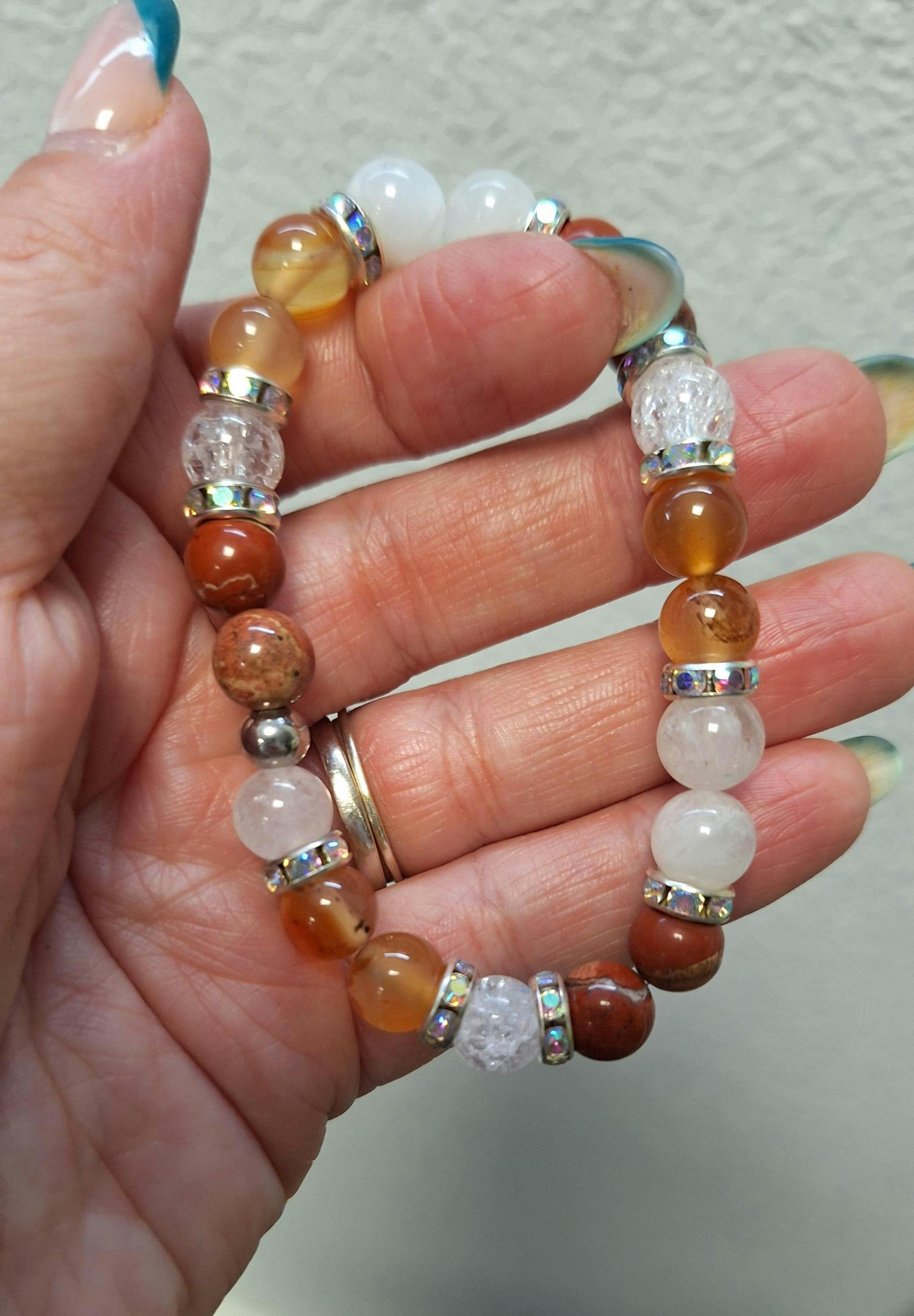 Bracelet Énergie Féminine – Pierre de Lune, Cornaline, Jaspe Rouge & Cristal de Roche