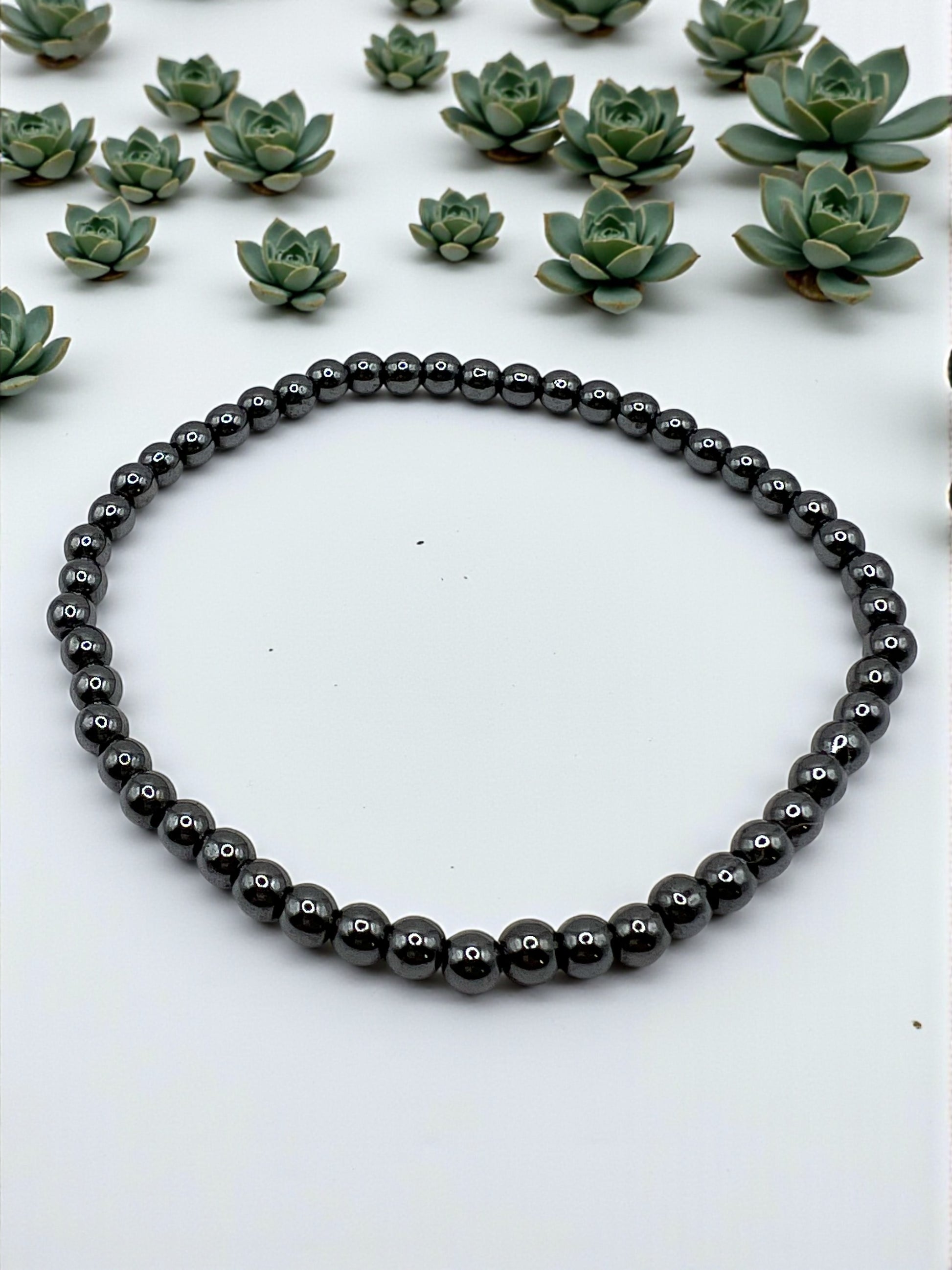 Bracelet Hématite 4 mm – Pierre Naturelle Anti-Stress & Stabilité Émotionnelle