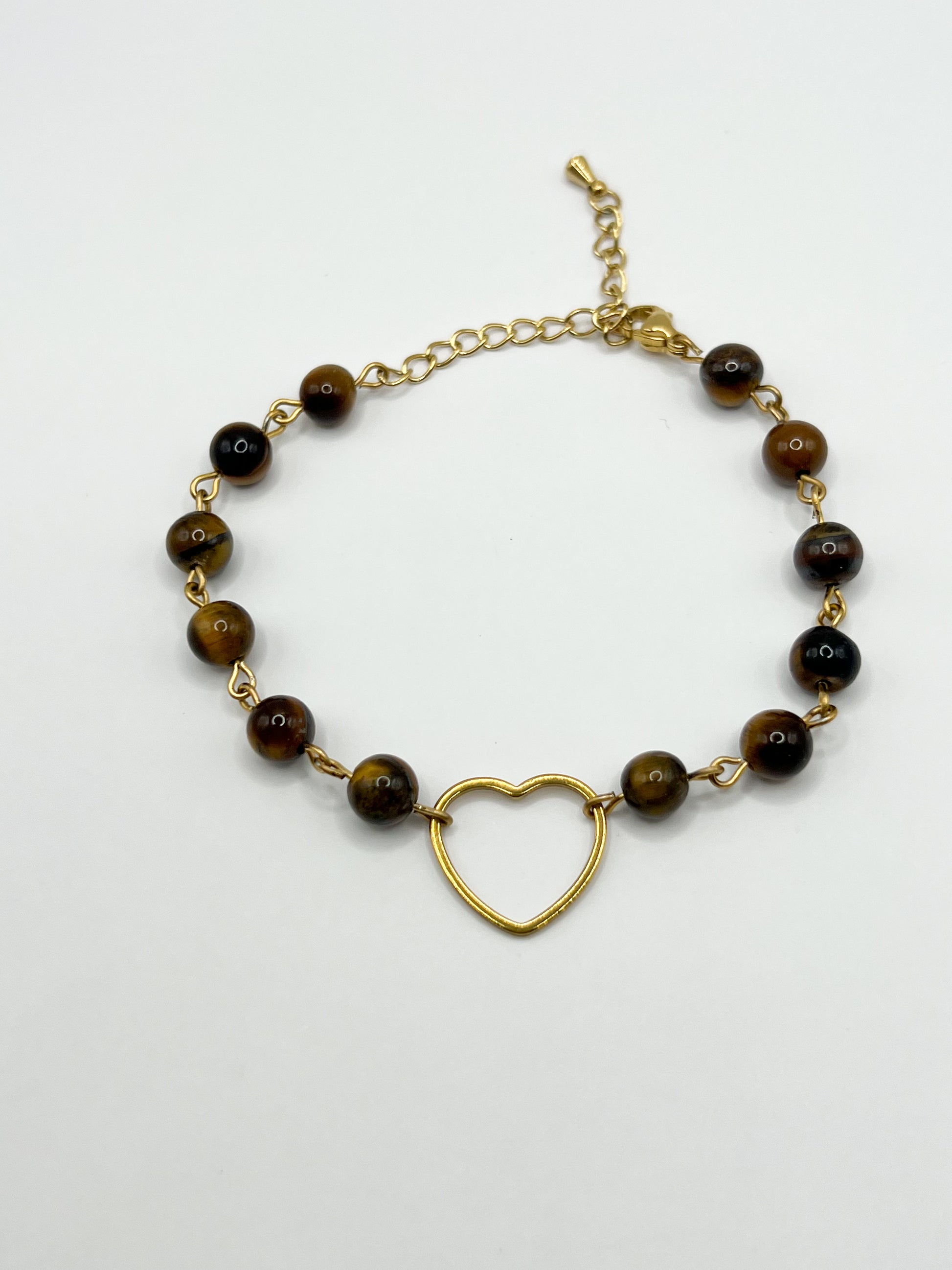 Ce bracelet en Œil de Tigre est composé de perles naturelles de 6 mm, montées sur une chaîne en acier inoxydable argenté hypoallergénique, avec un élégant pendentif cœur 💖.