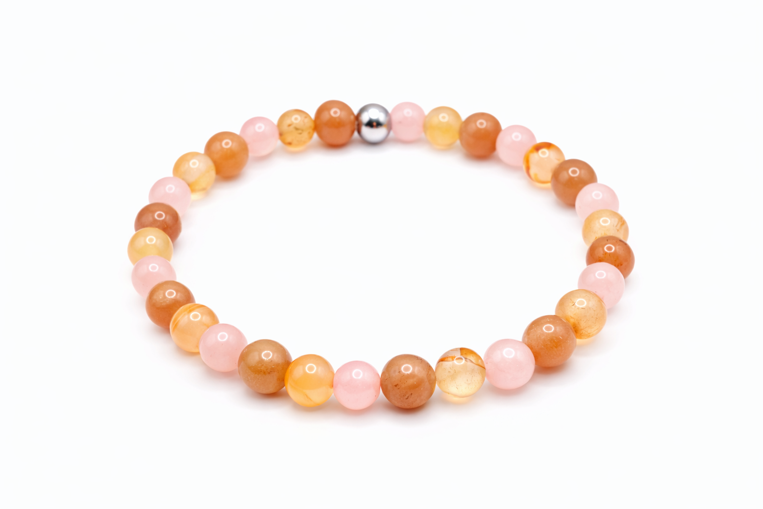 Bracelet Pierre Confiance en Soi – Quartz Rose, Pierre de Soleil & Cornaline