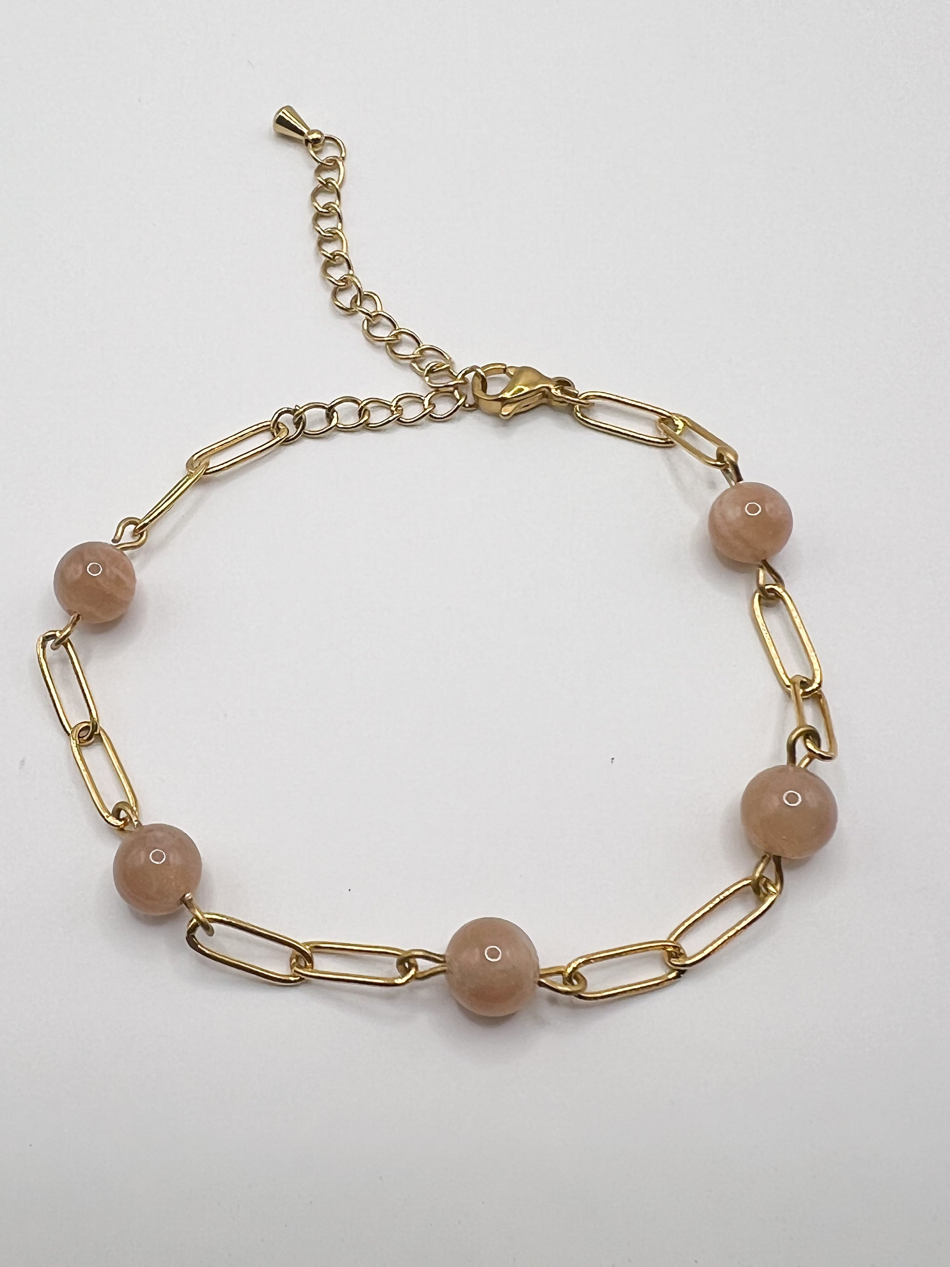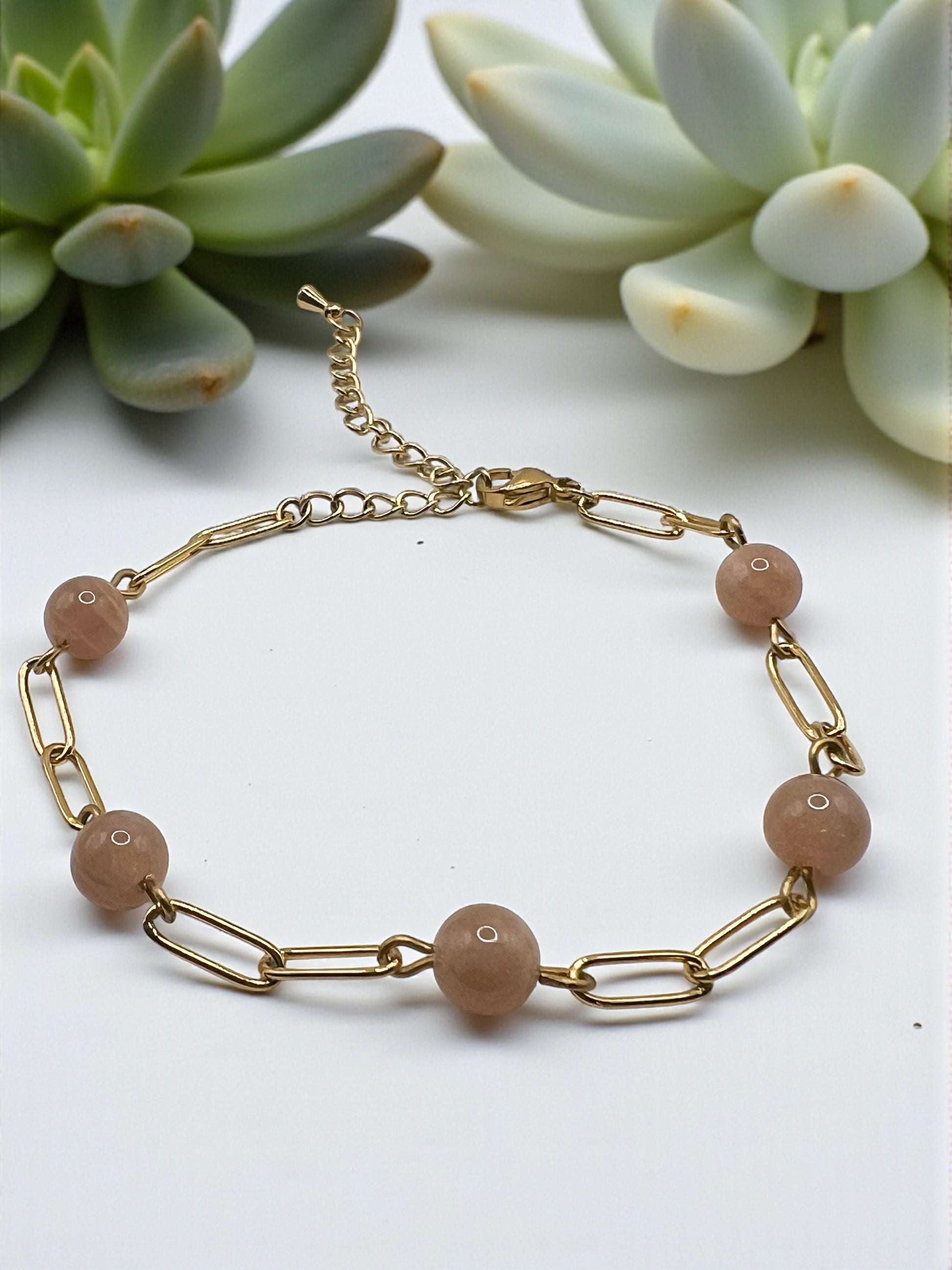 Bracelet Pierre de Soleil & Acier Doré – Vitalité, Confiance & Énergie Positive