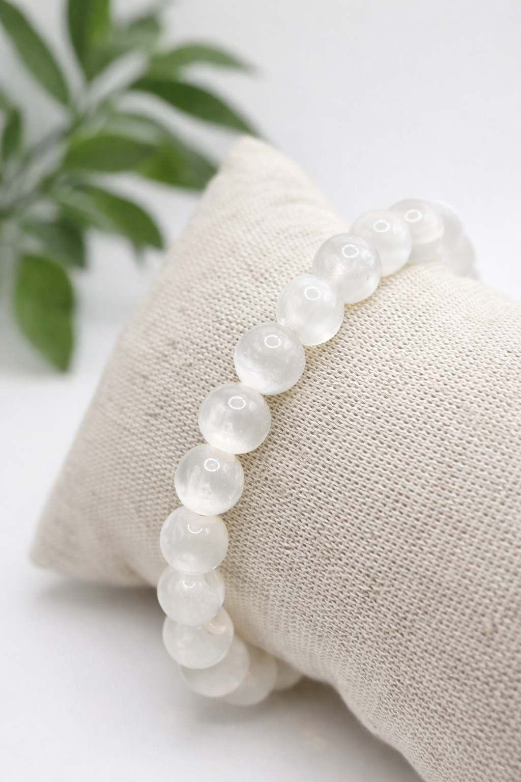 Bracelet Sélénite 8mm – Pierre Sélénite Blanche | Vertus et Bienfaits