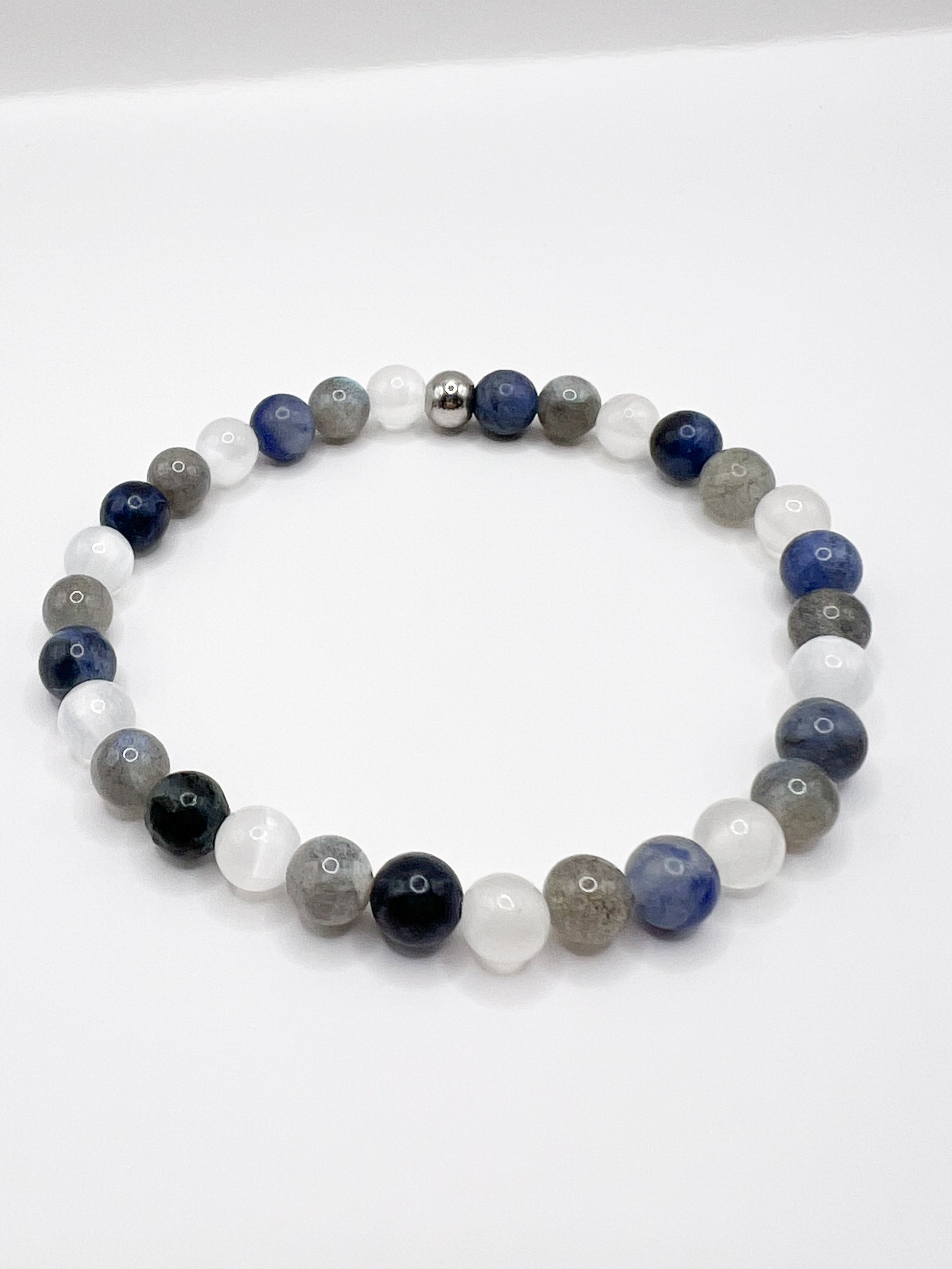 🌙 Bracelet Sommeil en Pierres Naturelles – Sélénite, Labradorite & Lapis Lazuli