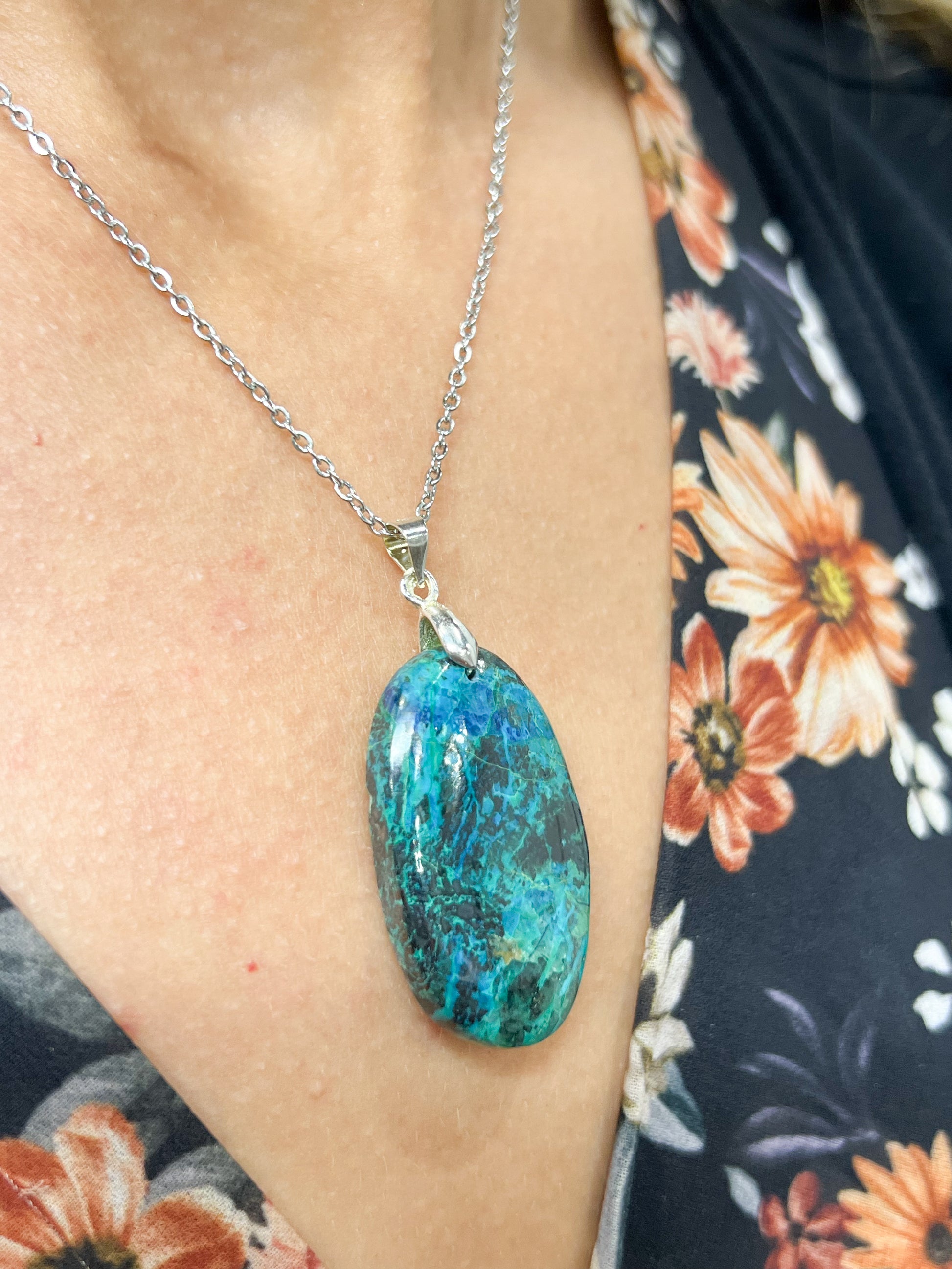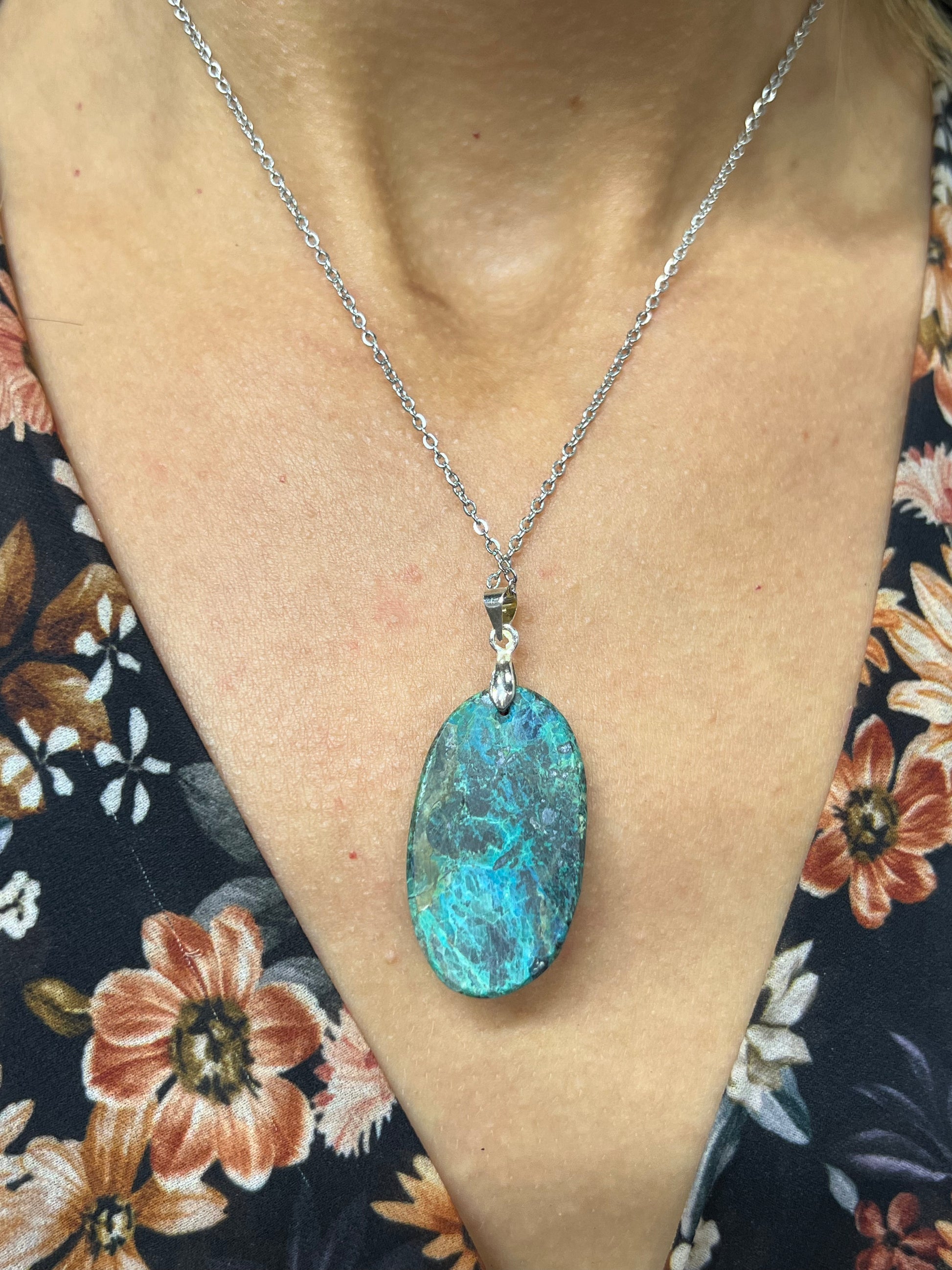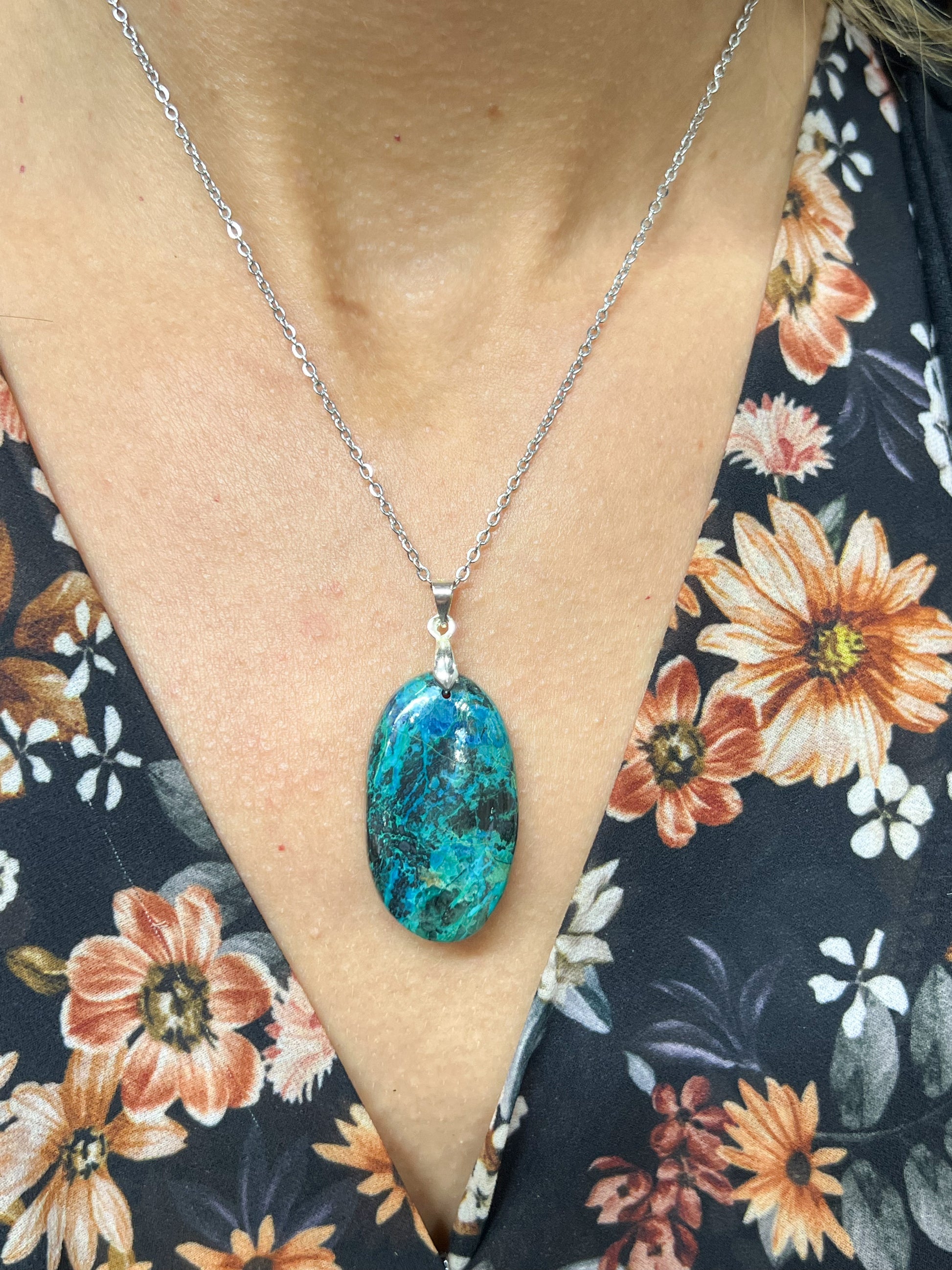 Ce collier chrysocolle est parfait en cadeau bien-être, bijou symbolique ou simplement pour sublimer votre quotidien avec une pierre naturelle d’exception 🌿💫.